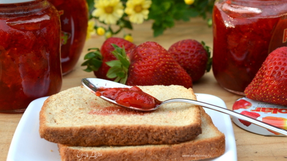 Прекрасный рецепт клубничного джема с ванильным ароматом, который подходит для блинчиков или домашнего мороженого.