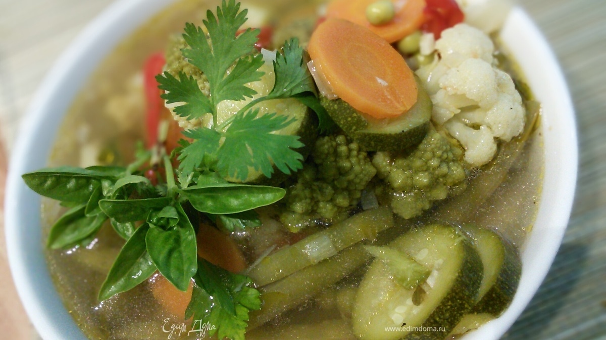 А в целом лёгкий летний овощной супчик. Подаётся с ложечкой ароматного изумрудного базиликого песто, что делает суп ещё вкуснее ![]()