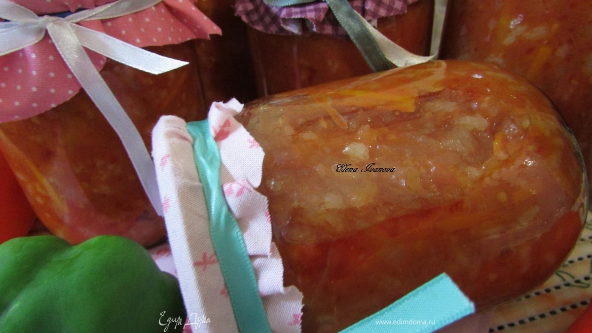 Салат горячим разложить по стерилизованным банкам, закатать под ключ. Я готовила сразу две порции. Выход: 5 баночек по 700 г и 6 баночек по 500 г. - Шаг 8