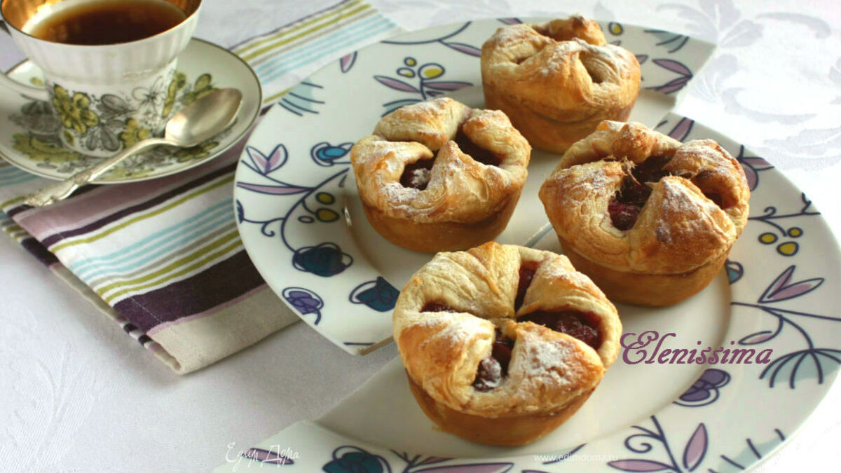 Потом вспомнила, что есть упаковка замороженного теста и вишня, ну и понеслось...Рецепт сочинялся на ходу, но результат всех порадовал. В тот раз они и остыть-то толком не успели, не то что дожить до утра к фотосессии. Я-то наивная думала, что 12 разделить на 3 будет по 4 на каждого, нет - мне только 2 досталось и все сожалели, что так мало испекла. В общем, через пару дней пекла на бис, поэтому успела всё сфотографировать.![]()