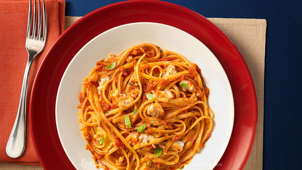 - ПодготовкаПриготовьте соус арраббиата: разогрейте в глубокой сковороде оливковое масло, обжарьте измельченный лук и чеснок. Перец чили нарежьте тонкими кольцами, сладкий перец полосками, добавьте в сковороду. Готовьте 3 минуты. Помидоры разомните вилкой и вместе с соком добавьте в сковороду, посолите. Тушите 5 минут.