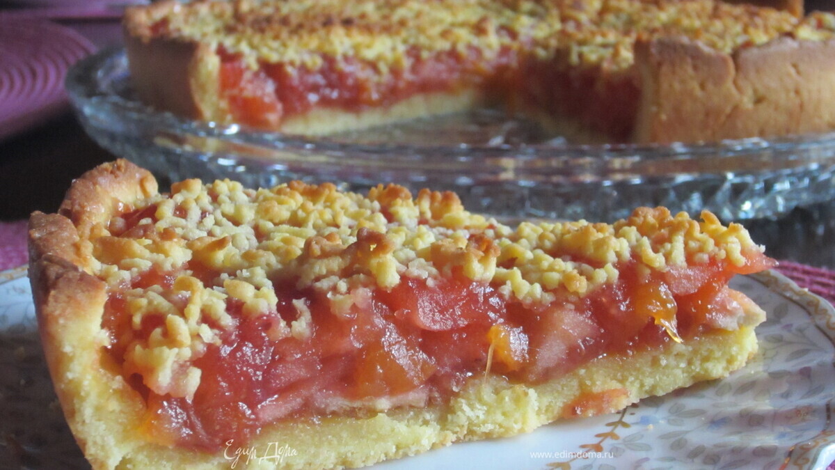 Выкладываем начинку и сверху посыпаем тертым тестом.