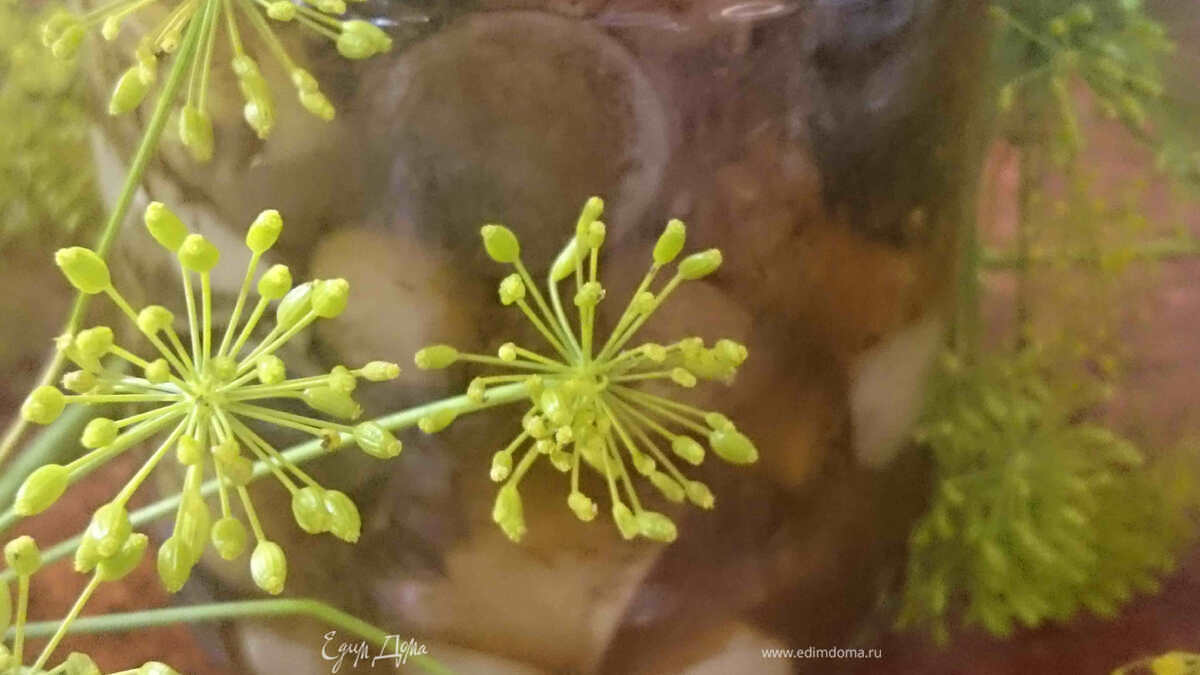 Укладываем плотно грибы. Процеживаем рассол и заливаем им грибы до верха. Остаток рассола не выливайте, он может понадобиться в самом конце. - Шаг 10Ставим стерилизовать. Для 800-граммовой банки надо 20 минут, для банки поменьше минут 15 вполне достаточно.