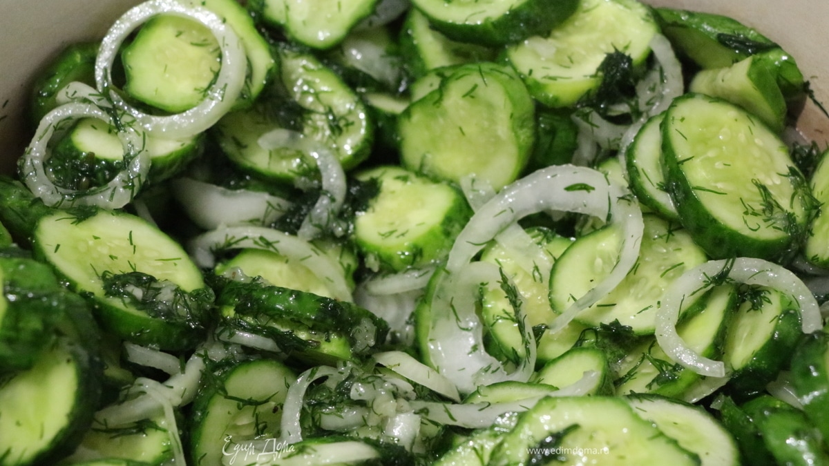 Хочу поделится вкусным рецептом из огурцов, который очень долго хранится в холодном месте. Мы его съедаем где-то за 1 месяц. Вкус салата получается сладковато-кислым.