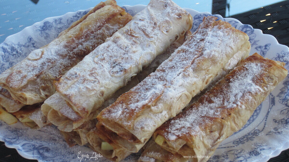 Очень понравились такие мини штрудели! Я правда яблочко потерла на крупной терке. Снаружи тесто хрустит, внутри ароматная начинка... Ими а времени на подготовку 5 минут. Да и угрызений совести за сьеденные калории не испытываешь. Спасибо за рецепт!