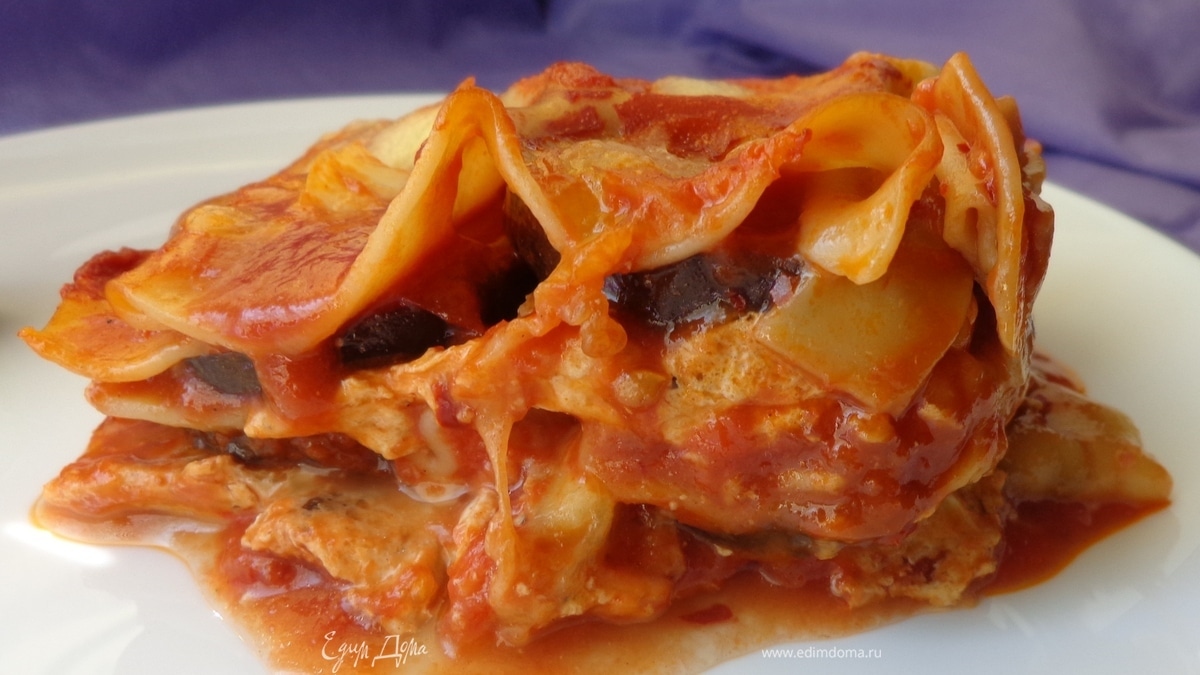 Лазанья с баклажанами, рикоттой и моцареллой