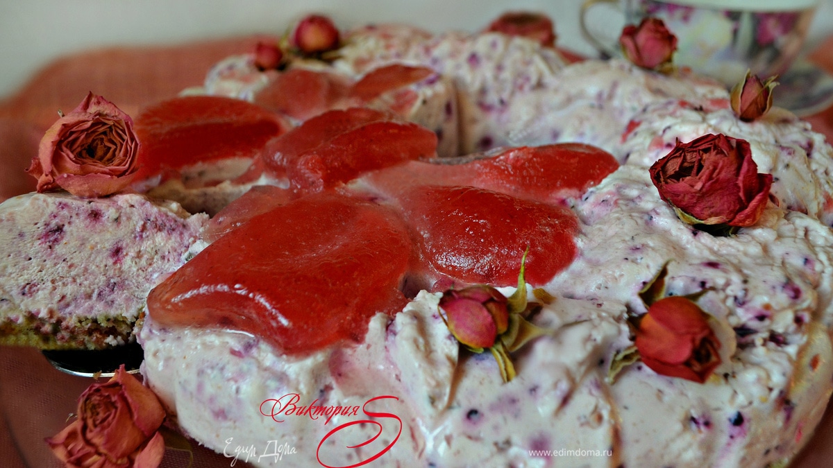 Лёгкий нежный торт, в меру сладкий с лёгкой ягодной кислинкой. Родился он буквально "на ходу", очень хотелось вкусно встретить мужа из дальней поездки. Время приготовления указано без учёта времени охлаждения торта.