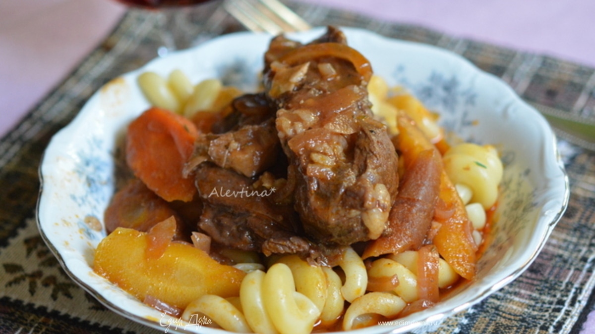 Выложить говяжьи ребрышки, морковь и полить мясным овощным соком. Подаем к столу тут же.