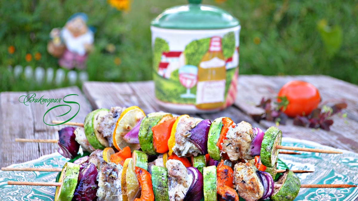 Готовые шашлычки выложите на поднос.