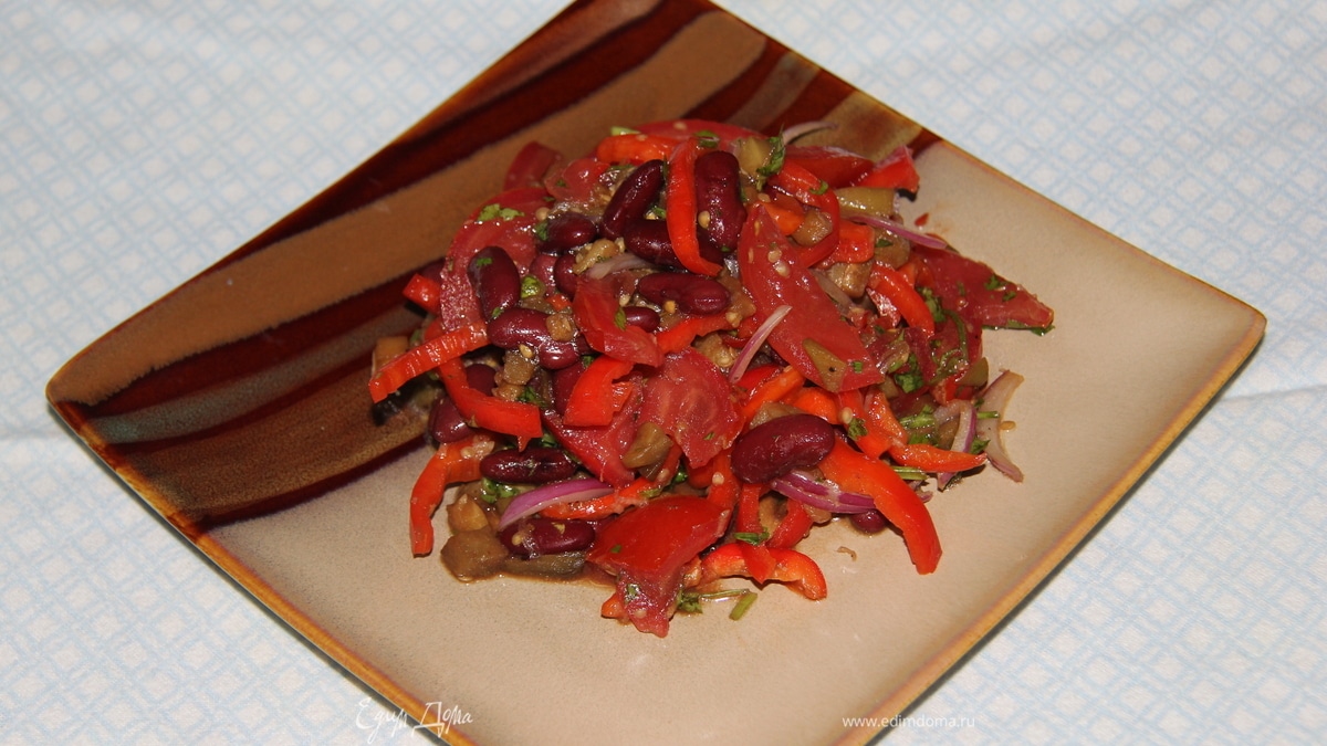 Теплый салат с фасолью