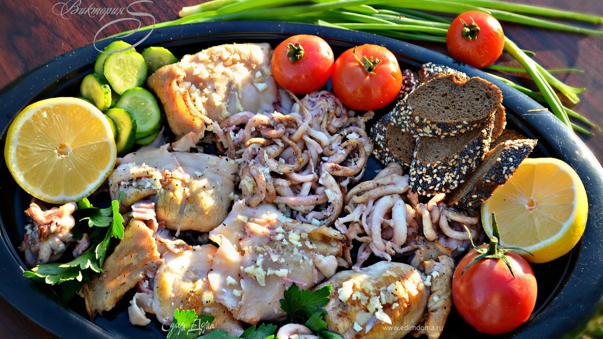 Кальмары и щупальцы, приготовленные на гриле по-черногорски