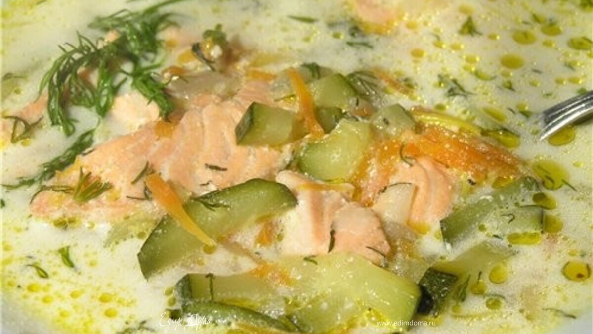 - Шаг 1-Сёмгу нарезать кусками. Залить 1 литром воды и отварить, минут 10. Затем рыбу вынуть из кастрюли. -В рыбный бульон добавить почищенные и нарезанные крупно: морковь, лук, помидор, картофель. После того, как закипит, добавить лавровый лист и посолить по вкусу. Варить минут 15. -Когда овощи станут мягкими, нужно их поместить в блендер и взбить со сливками или сметаной. -Бульон отфильтровать. Поместить в него взбитую овощную массу. Добавить ложку томатной пасты, каперсы и оливки. Помешивая, нагреть до кипения. -Семгу почистить от костей и положить в горячий суп. Подавать в горячем виде, посыпав рубленным укропом.
