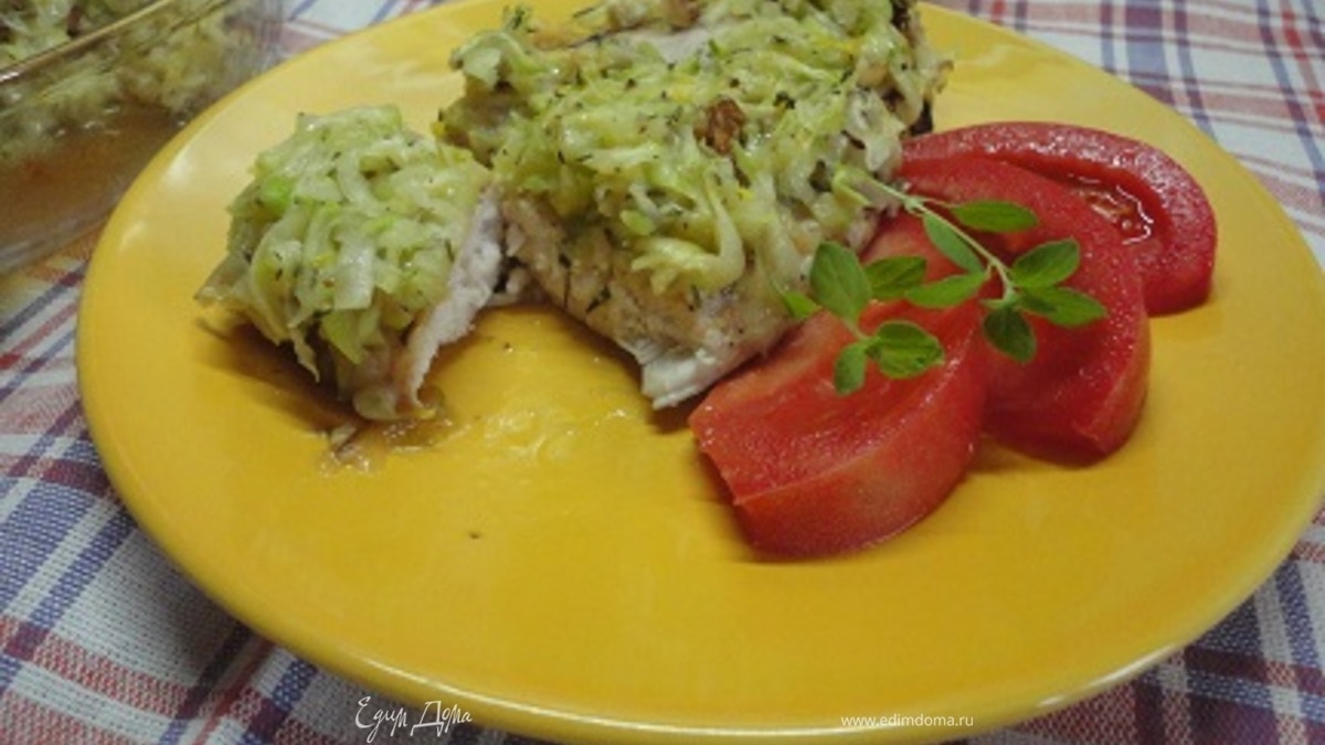 Включить духовку для разогрева до 180-200 градусов. Цукини слегка отжать и смешать с цедрой, сыром, орехами и листиками тимьяна. Приправить черным перцем и перемешать. Переложить мясо в жаропрочную форму, на него выложить смесь из цукини. Сбрызнуть оставшимся оливковым маслом и запекать в духовке 20-30 минут.