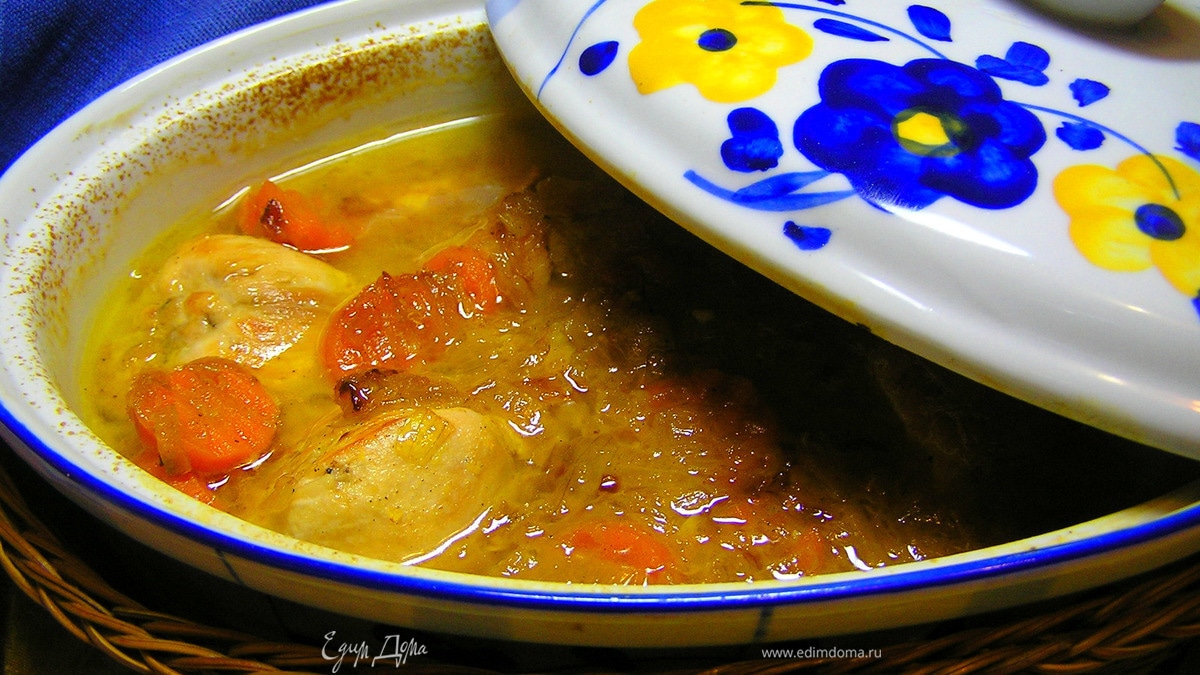 - ПодготовкаРазогреть сливочное и растительное масло и слегка обжарить в нем нарезанные на 3-4 части филе. Вынуть курицу и в этом жиру обжарить лук и морковь. Смешать цедру, сок, мед, горчицу, имбирь, соль и перец. Положить к овощам курицу, залить соусом и довести до кипения. Переложить в форму для запекания, накрыть крышкой (или фольгой) и запекать в духовке при тем-ре 200 гр. 50 минут. На гарнир подайте рис.