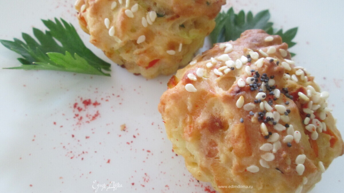 Смазываем формы растительным маслом, заполняем их на 3/4 и выпекаем 15-20 минут при 180*. По желанию посыпаем кунжутом, маком или паприкой. - Шаг 2