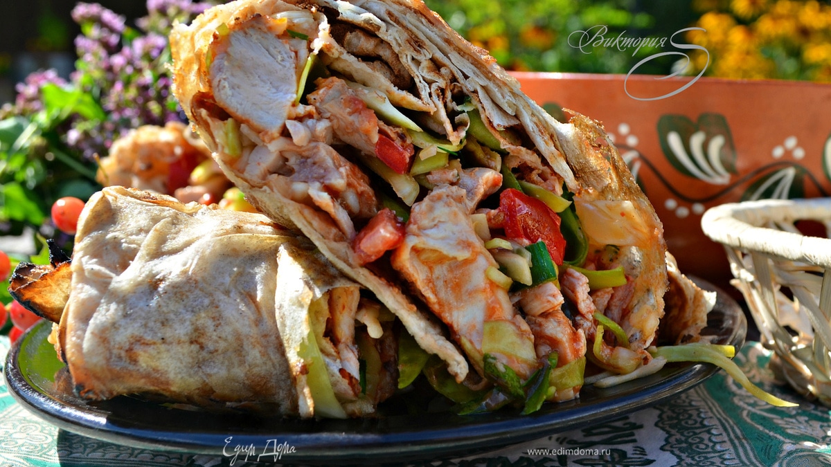 Предлагаю вам приготовить дачный вариант шаурмы. Вкусно, сочно, с запахом дымка — замечательный вариант для посиделок на свежем воздухе! Угощайтесь!