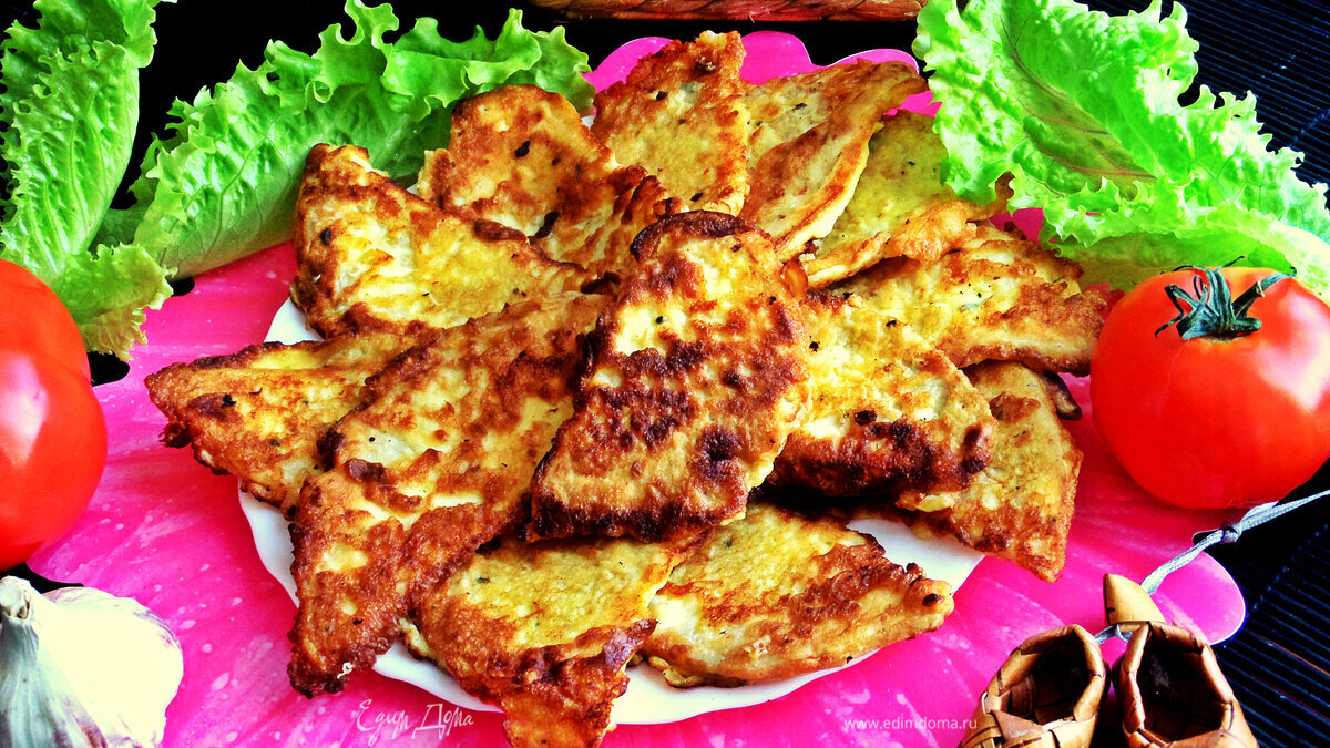 Затем мучной ломтик плавно переезжает в кляр. Тут придётся окунуть пальчики и "потопить" ломтик полностью в кляре. - Шаг 4