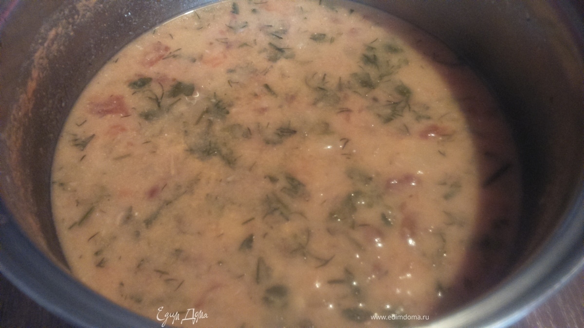 Вскипятить воду, посолить, добавить картофель и отваренную отдельно фасоль. Проварить до почти полной готовности картофеля. Всыпать смесь со сковороды (шаг 2), проварить пару минут. Половину супа размельчить блендером (либо в кастрюле с супом на глаз, либо переложив половину супа в другую емкость) Добавить сметану, довести до кипения.