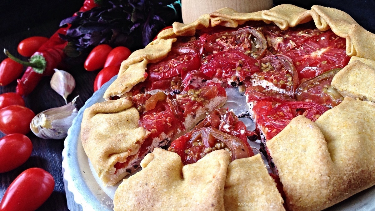 Если у Вас нет под рукой кукурузной муки, её можно заменить на ржаную! Томаты лучше всего использовать сочные, а для красоты