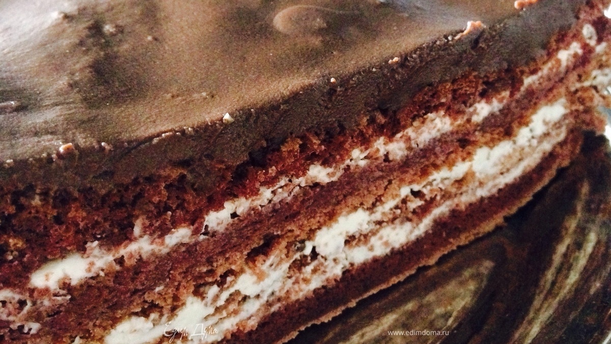 Покрываем глазурью верхний корж.