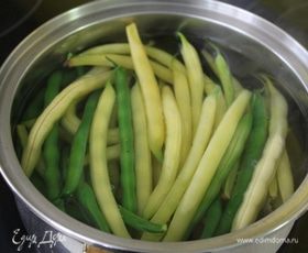 Фасоль отварить мин 5 в кипящей подсоленной воде.
