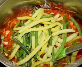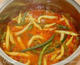 Добавить фасоль и готовить 10 мин.