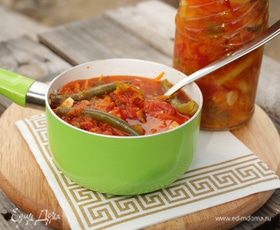 Сегодня попробовала новый салат из собственно выращенной стручковой фасоли, салат прошел дегустацию, всем понравился, принесла Вам!