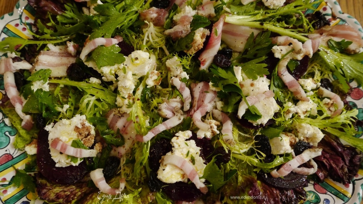 Свежий салат с козьим сыром, свеклой и изюмом