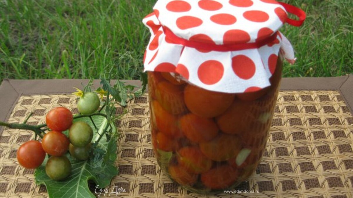 Очень вкусная домашняя заготовочка из помидорок-черри. Называется большой урожай, потому что их очень много на кусте.