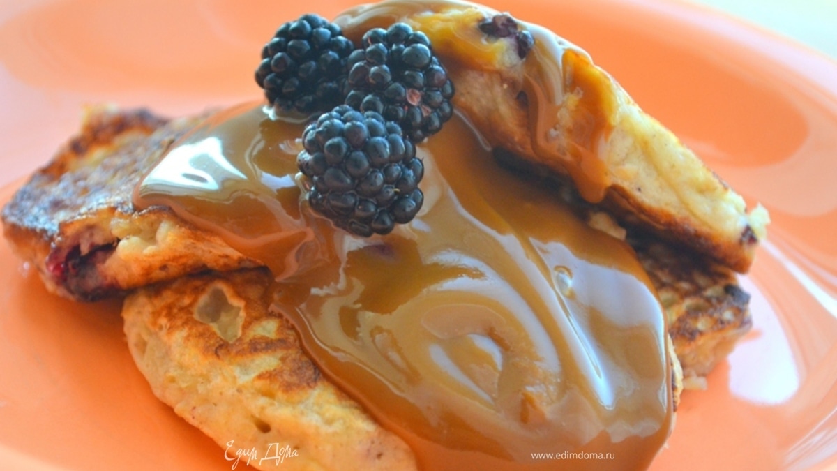 Оладьи с бананом, ежевикой и овсяными хлопьями