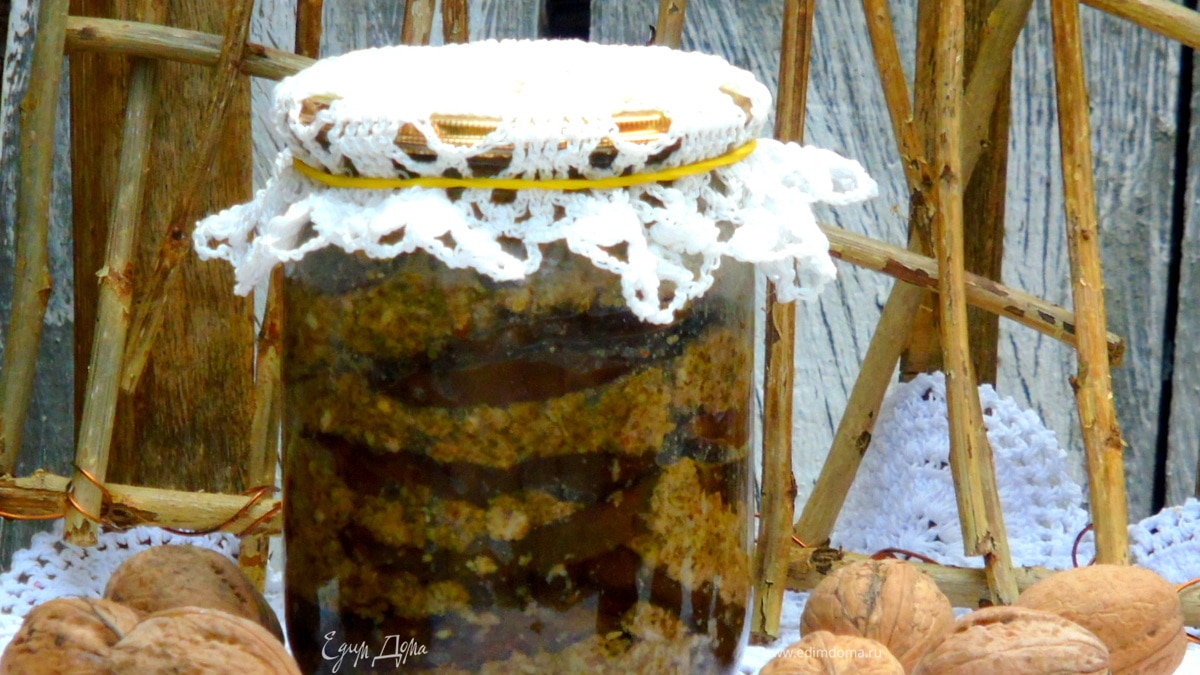Чеснок, перец, петрушку и орехи пропустить через мясорубку. Добавить соль, растительное масло и уксус. Хорошо перемешать. - Шаг 4