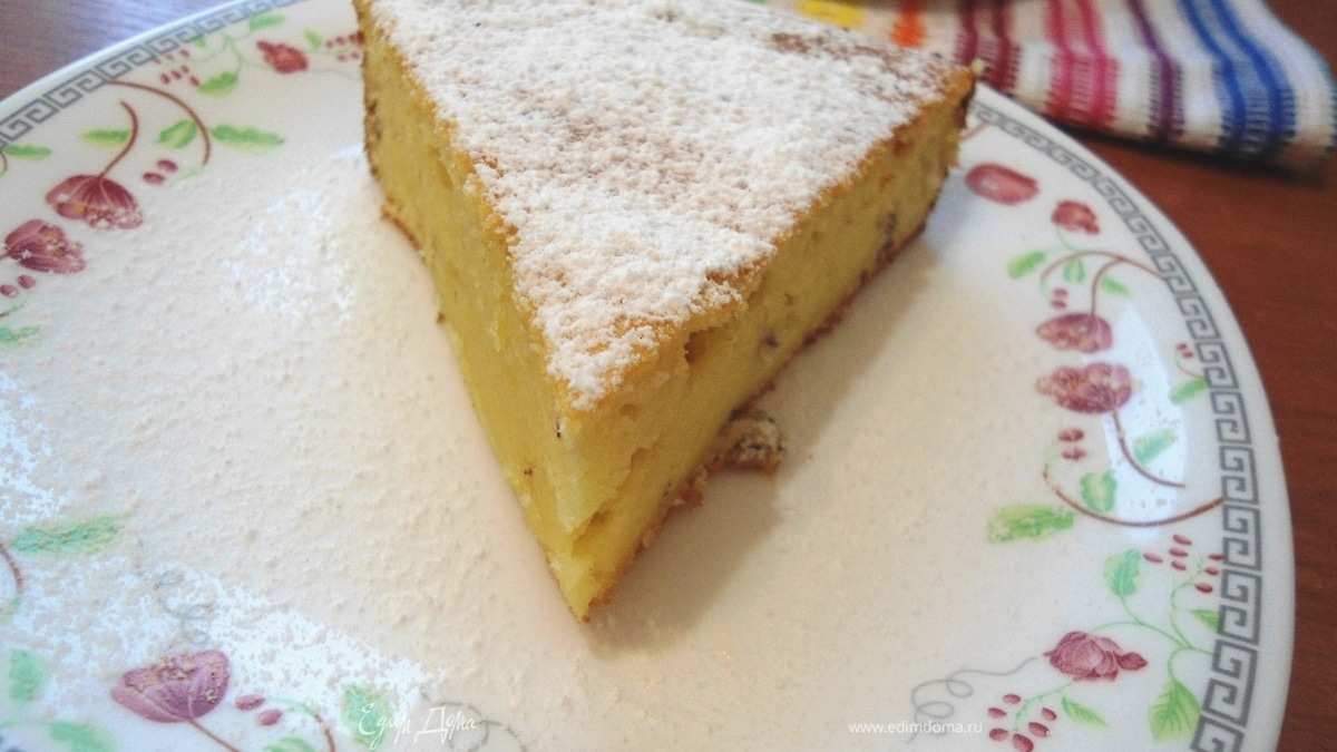 Выпекается пирог около 40 минут до сухой зубочистки. Остужаем, присыпаем сахарной пудрой и пьем чай!