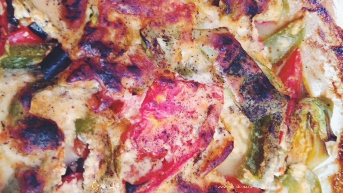 Овощи, запеченные с сыром, йогуртом и перцем чили