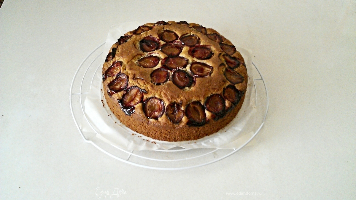 - Шаг 7В форму d24см (у меня антипригарная, я ее ничем не смазывала) вылить тесто, сверху выложить сливы.