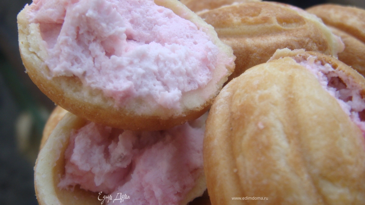 Печенье "Орешки", фаршированные малиновым чизкейком