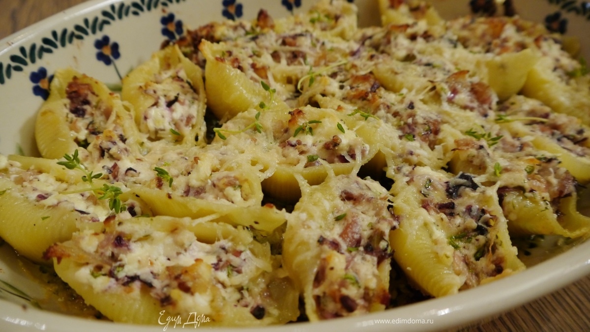 Конкильони с творогом и радиккио