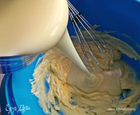 Влить в мягкое масло сгущёнку.