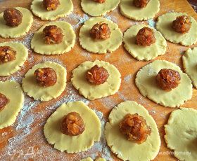 И распределяем начинку по заготовкам. У меня хватило точь-в-точь.