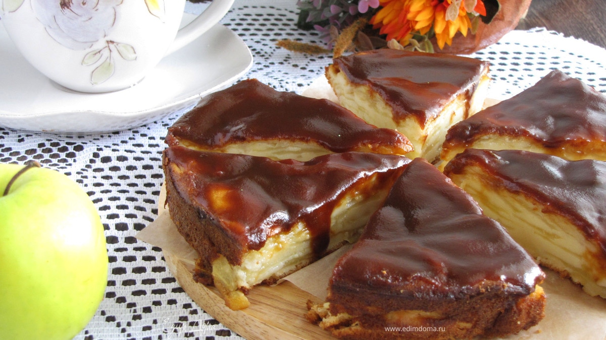 Карамельный грушево-яблочный пирог готов! Разрезаем и пробуем, угощаем близких и друзей. Приятного аппетита!