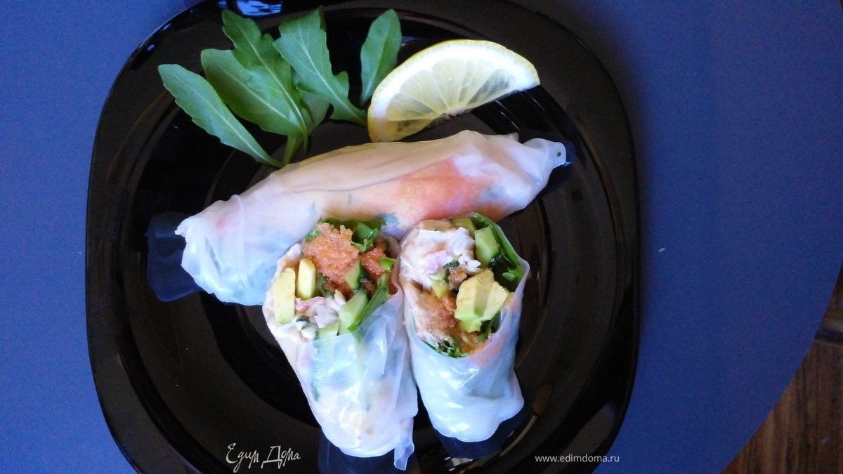 Сегодня у меня день японской кухни ))) Калифорния-рору - это японская холодная закуска, мое любимое блюдо в ресторане Тануки. На днях купила рисовую бумагу и вот что получилось))) В списке ингридиентов икра это икра масаго, хрен - это васаби.