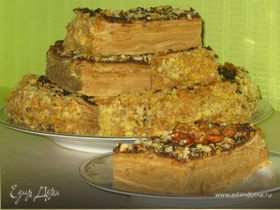 Рекомендуемая форма квадратная или прямоугольная размером примерно 17х17 (чтобы потом нарезать на квадраты). За неимением такой, я пекла в круглой форме диаметром 20 см.