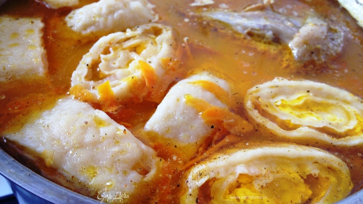 Куриный суп с сырными рулетиками