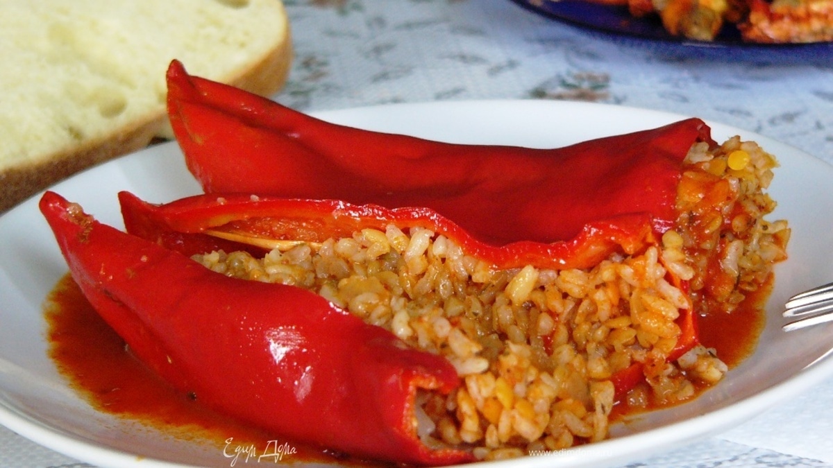 Фаршированный перец с желтой чечевицей