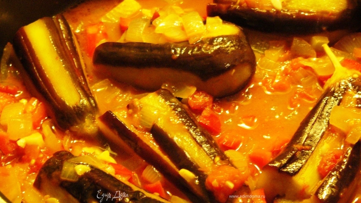 Тушить под крышкой до мягкости баклажанов около 15 минут. Опытные хозяйки могут догадаться, что кислота плюс сахар дают вкус, похожий на маринованные салаты с уксусом. Но это интересно. Лук за счет кислоты, остается хрустящим и маринованным. И аромат невероятный! Прошу пробовать!