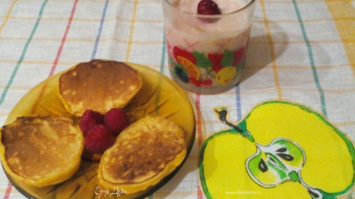 Украшаем малинкой (или можно потереть шоколадную конфетку - будет очень вкусно!). Десерт можно сделать пока заваривается кофе или чай... Намазываем бутерброд с маслом, и полноценный завтрак готов! У меня остались оладушки из тыквенной каши вместо бутерброда... с ними тоже очень вкусно! Готовьте с удовольствием и угощайтесь!