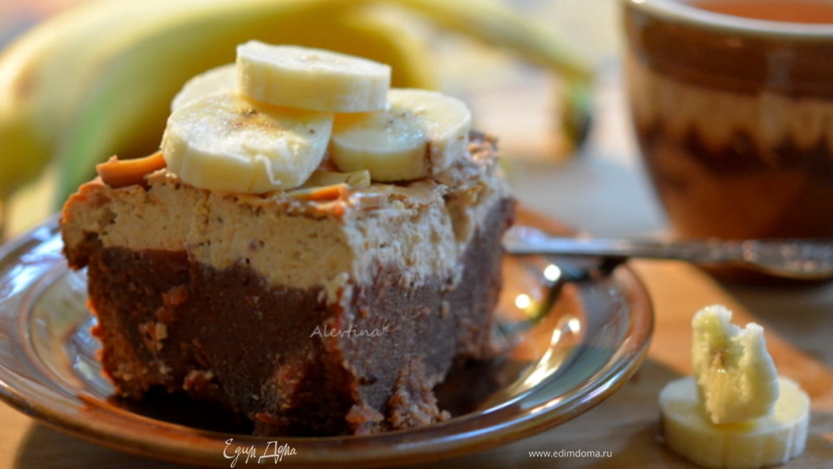 Охладить в холодильники, разрезать на квадратики. Украсить банановыми кружками и вишней мараскино по желанию. Приятного аппетита.