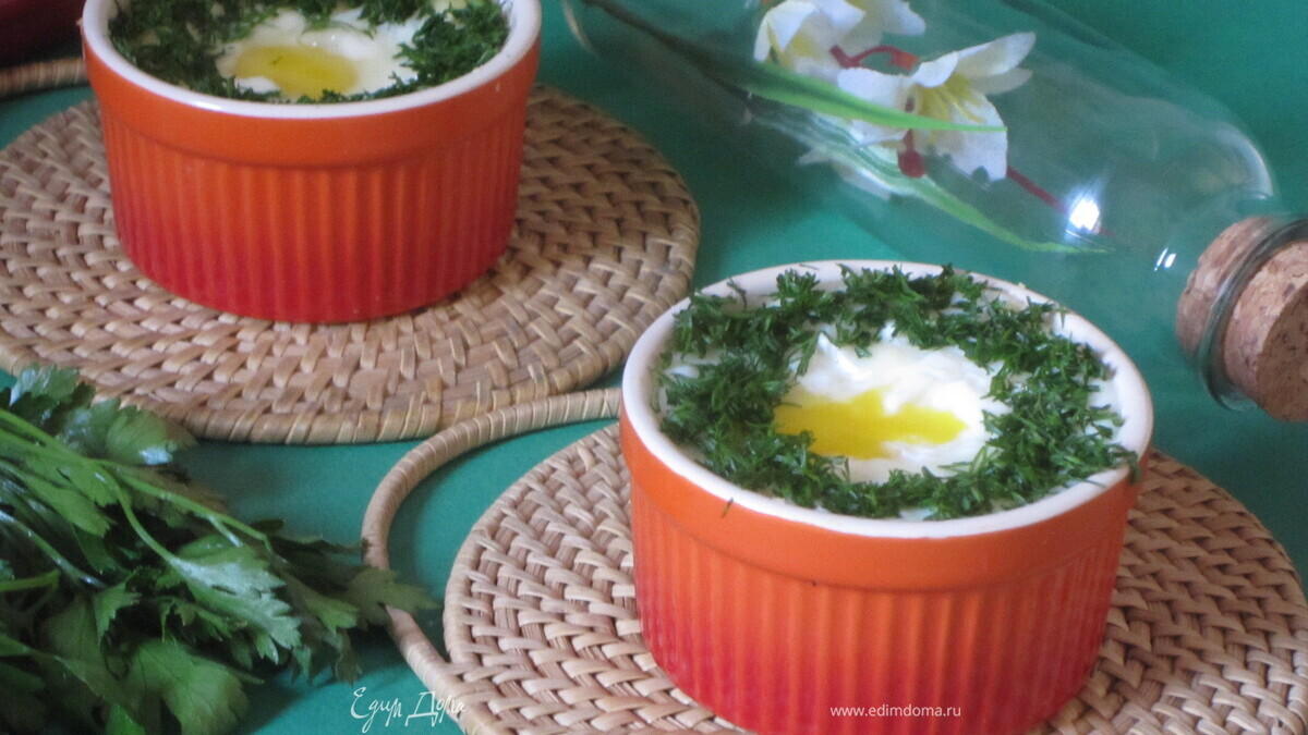 Запекать 2 минуты 50 секунд при мощности 1000 вт. Я вначале выставляю время "2 минуты", а потом уже включаю по 20 секунд и смотрю, как яйцо запеклось. Вынуть из микроволновки, посыпать мелко нарезанной зеленью укропа.