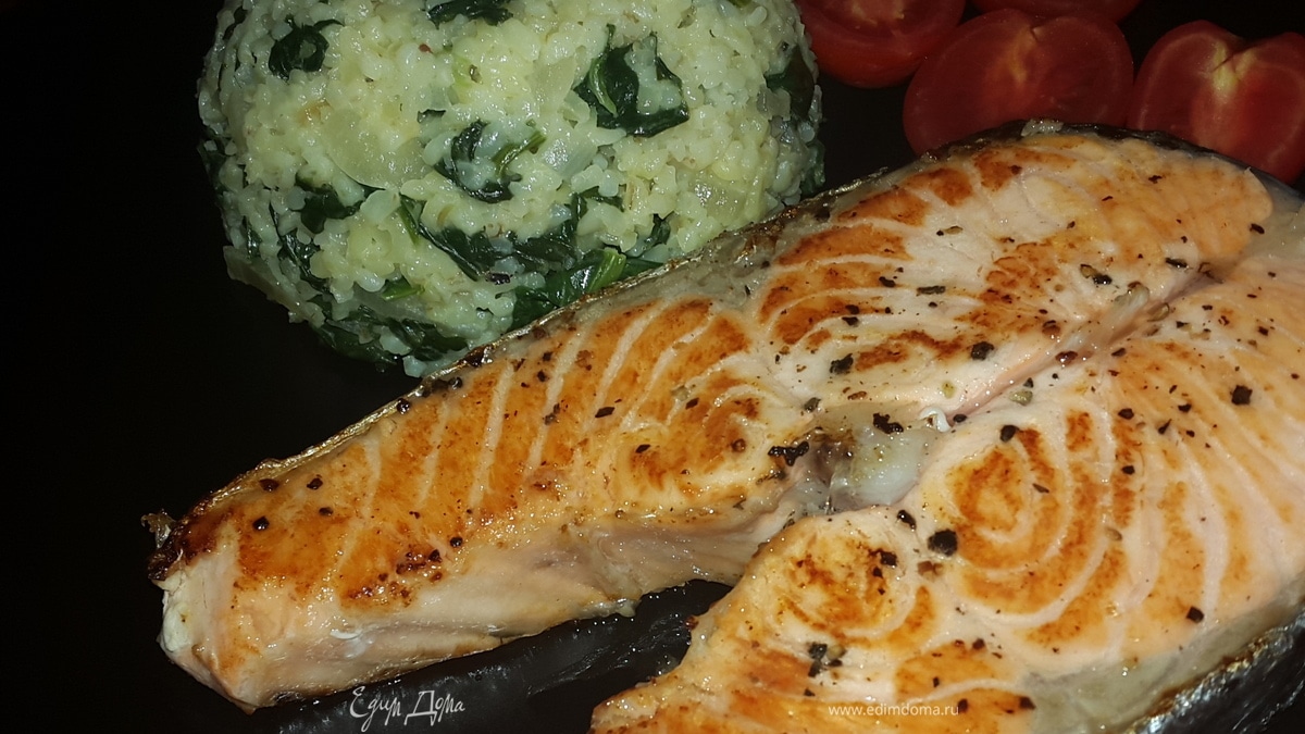 Жареный лосось и кускус со шпинатом