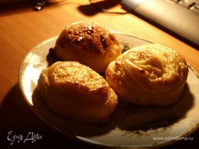 Посмотрите, как они красиво смотрятся на тарелке! Можно пробовать! P.S. В кондитерской, где я попробовала когда-то эти пирожки впервые, их готовят из укропного теста. Это очень ароматно! Если есть под рукой укроп, используйте эту идею!