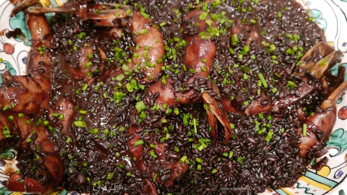 Черный рис с креветками